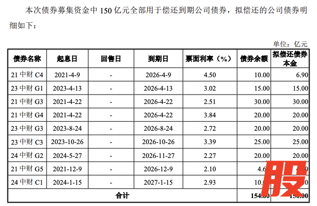 上交所公司债券项目信息平台显示,中国中金财富证券有限公司200亿元小公募债项目状态更新为“已受理”,受理日期为2025年12月5日。募集说明书申报稿显示,本次债券的募集资金将在扣除发行费用后,其中150亿元全部用于偿还到期公司债券本金,剩余部分将用于补充流动资金。